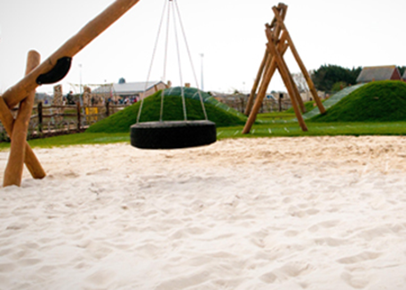 在類似木質游樂器材、滑梯、木質海盜船等爬高并下降的設備中,必須進行抗沖擊地面。
